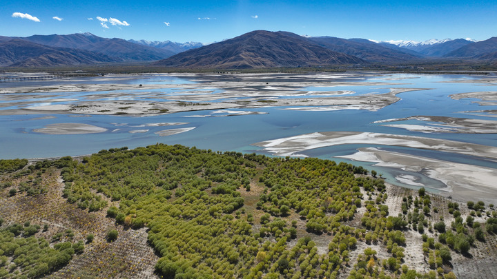 ??這是雅魯藏布江寬闊的河床和岸邊種植的樹(shù)木。新華社記者晉美多吉 攝
