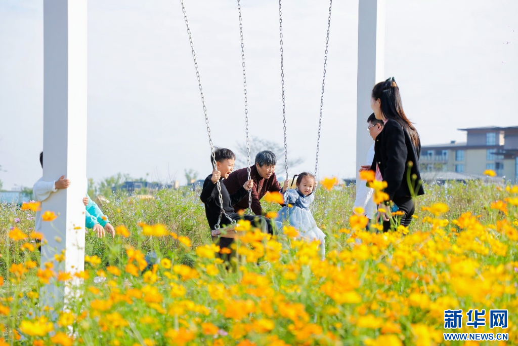 ??游客在花海游玩。新華網(wǎng)發(fā) 徐融攝 (2024年10月20日)