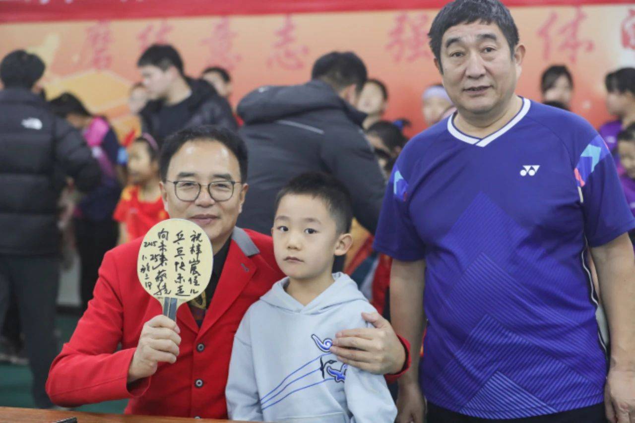 比賽結(jié)束后,蔡猛老師還參加了球拍簽名活動。他耐心地與每一位小選手合影留念,并在他們的球拍上簽下了自己的名字和祝福。這一舉動不僅讓小選手們倍感榮幸,也讓他們更加堅定了對乒乓球運動的熱愛和追求。