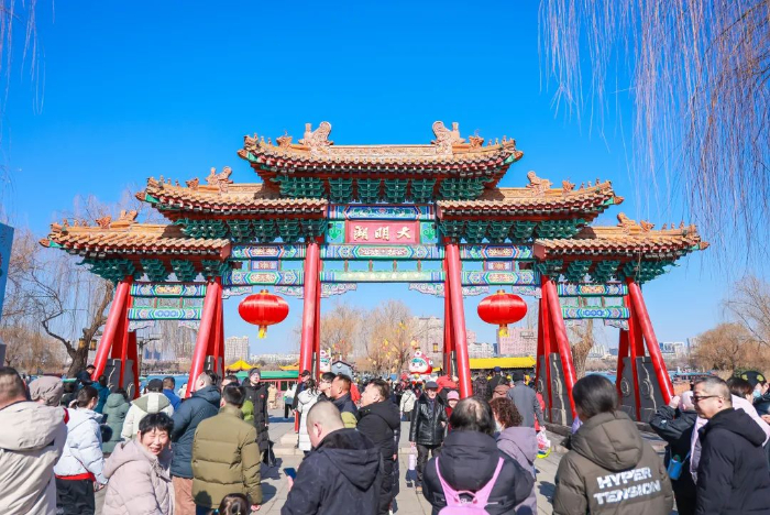 ??天下第一泉新春廟會(huì)作為極具春節(jié)特色的民俗活動(dòng),吸引了大量的市民游客前來(lái)游玩。本屆廟會(huì)以【泉城追光·廟趣明湖】為主題,將傳統(tǒng)的大明湖廟會(huì)延伸到大明湖、趵突泉、五龍?zhí)度缶皡^(qū),讓人們感受到傳統(tǒng)文化的魅力的同時(shí),沉浸式體驗(yàn)濃郁的新春節(jié)日氛圍。