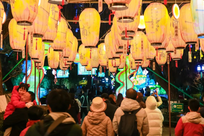 ??白天逛廟會(huì),晚上賞花燈。趵突泉的花燈作為春節(jié)期間不容錯(cuò)過(guò)的打卡視覺(jué)盛宴,吸引無(wú)數(shù)本地市民和外地游客前來(lái)觀賞。本屆燈會(huì)從區(qū)域、規(guī)模、品質(zhì)、科技和文化的挖掘與呈現(xiàn)等五大維度進(jìn)行了全新升級(jí),天下第一泉風(fēng)景區(qū)各景點(diǎn)整體布局、聯(lián)動(dòng)呈現(xiàn)。精雕細(xì)琢,映照千年文化,盡顯泉城詩(shī)意;燈火璀璨,如夢(mèng)如幻,視覺(jué)效果更加震撼。
