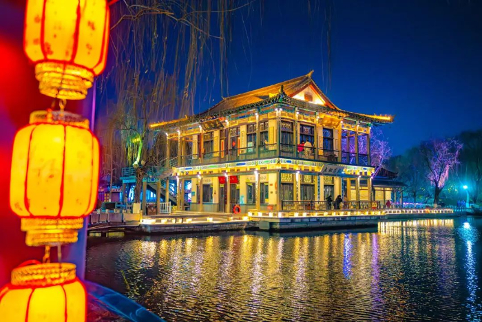 ??大明湖景區(qū)以“歡樂(lè)中國(guó)年”為主題,在西南門(mén)、湖西草坪、北岸、東門(mén)、南岸正誼廣場(chǎng)等位置,設(shè)置了一系列春節(jié)元素豐富、喜慶熱鬧的大型花燈,展示傳統(tǒng)文化和打造節(jié)日氛圍。市民游客在尋覓“湖畔雨荷”之際,一路飽覽明湖風(fēng)光,打卡璀璨花燈,暢游新春廟會(huì)。