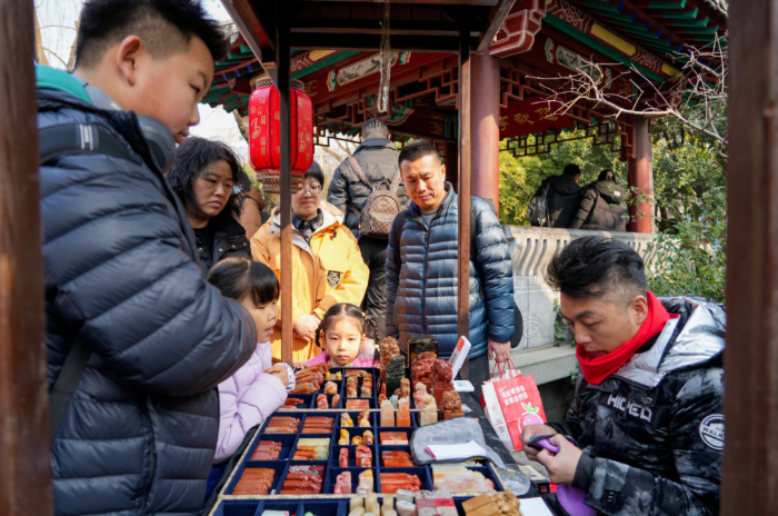 ??趵突泉景區(qū)在廟會(huì)期間結(jié)合迎春花燈會(huì),推出非遺傳承展、民俗文化展、親泉品泉展以及泉城兔子王非遺體驗(yàn)。非遺刻章、非遺皮影、非遺翻花、老濟(jì)南酸蘸兒、泉水大碗茶等極具泉城特色的產(chǎn)品,帶領(lǐng)市民游客游園賞燈品非遺,感受純正的泉城文化內(nèi)涵。