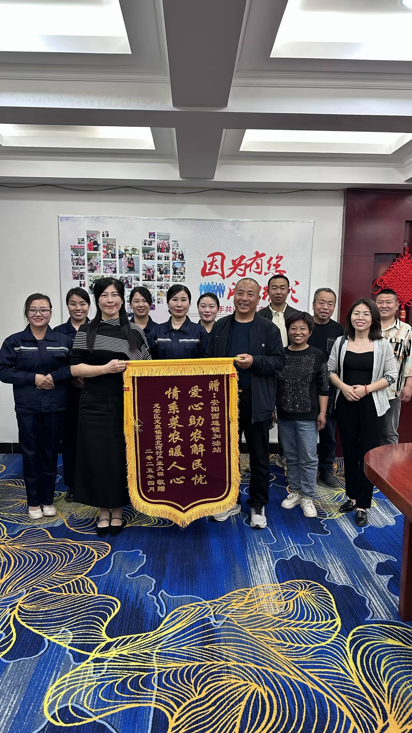 為表感激之情,安陽市龍安區(qū)龍泉鎮(zhèn)高北河村產(chǎn)業(yè)大棚的農(nóng)戶們特意制作了一面寫有“愛心助農(nóng)解民憂,情系菜農(nóng)暖人心”的錦旗,送到智凱石化加油站。鮮紅的錦旗,不僅承載著農(nóng)戶們深深的謝意,更見證了企業(yè)助力鄉(xiāng)村振興的擔(dān)當(dāng)與愛心。