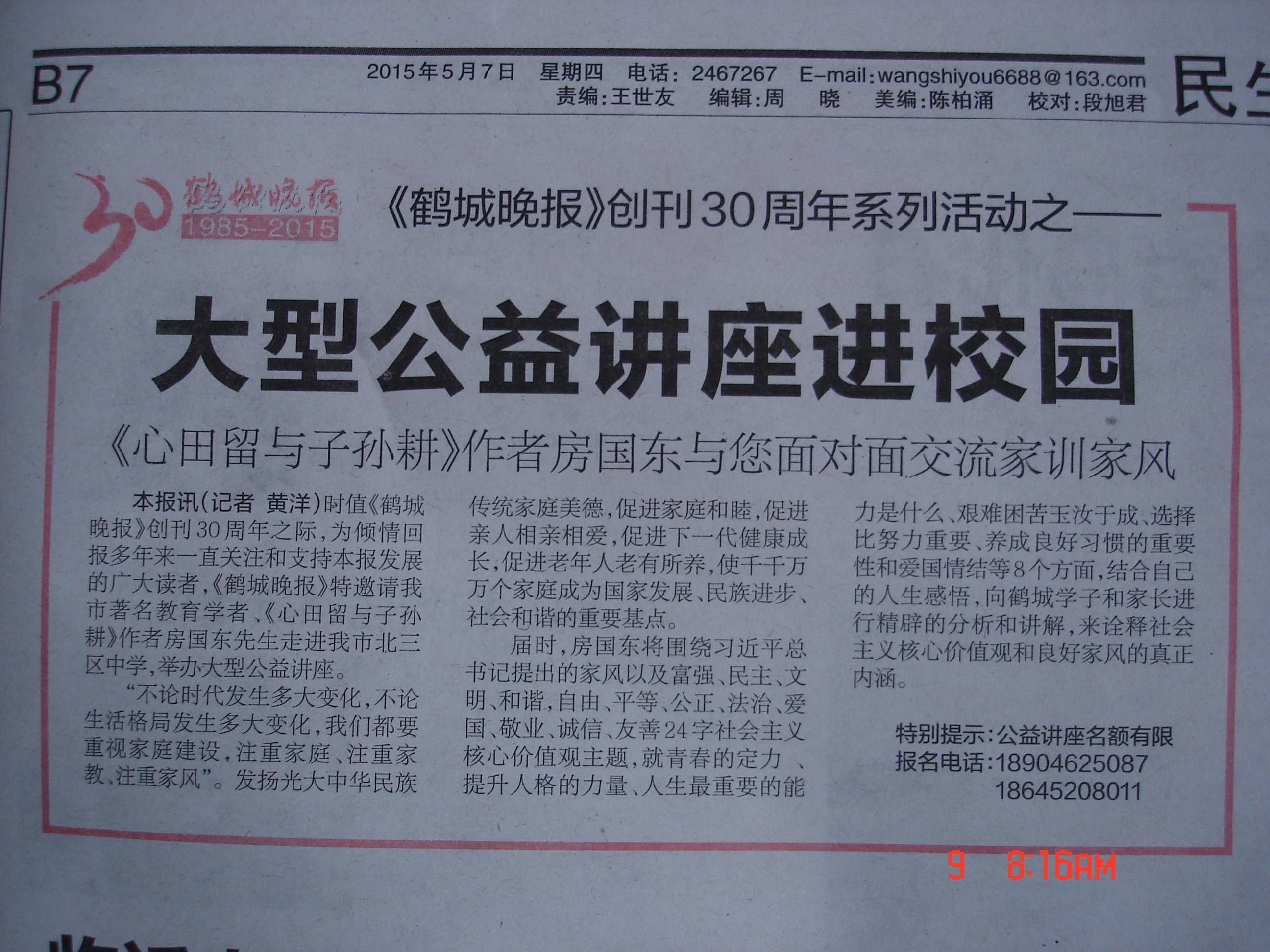 當時,剛好習近平主席強調(diào)要“把立德樹人作為根本任務”,我聽了感到非常振奮!這是實現(xiàn)民族振興的治本之策啊!許多讀者認為我的“家訓”是對習主席號召最具體的響應!——我特喜歡這個評價!