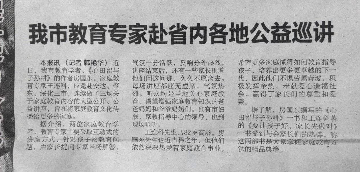 由于我出版了一部當代傳世家訓《心田留與子孫耕》,引起了一些社會團體和個人對我的關注。因此,使我有機會更多接觸家長、更多聽到家長們的呼聲、更多感受到家長們的困惑。開始認識到,中國要有好孩子,當務之急是提升家長。2017末,齊齊哈爾市外國語學校董事長孫洪光同志,因為看到我的書(《心田留與子孫耕》),跟我探討家庭教育方面的問題,于是,力邀我到外國語學校做家校合作管理委員會主任,兼做“家長學校”校長。“周五家長課堂”在我手舉辦46期。當我得以系統(tǒng)持續(xù)地在一個相對穩(wěn)定的“家長課堂”傳播家庭教育理念的時候,相較于那種隨機性、游走式“家庭教育”傳播方式,我感受到了“家長課堂”應該是家庭教育不可或缺的選項。