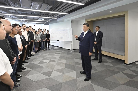 △2025年4月29日,習(xí)近平總書記在上海“模速空間”大模型創(chuàng)新生態(tài)社區(qū),同正在參加“下一代智能體的自主進(jìn)化”主題沙龍的青年創(chuàng)新人才親切交流。